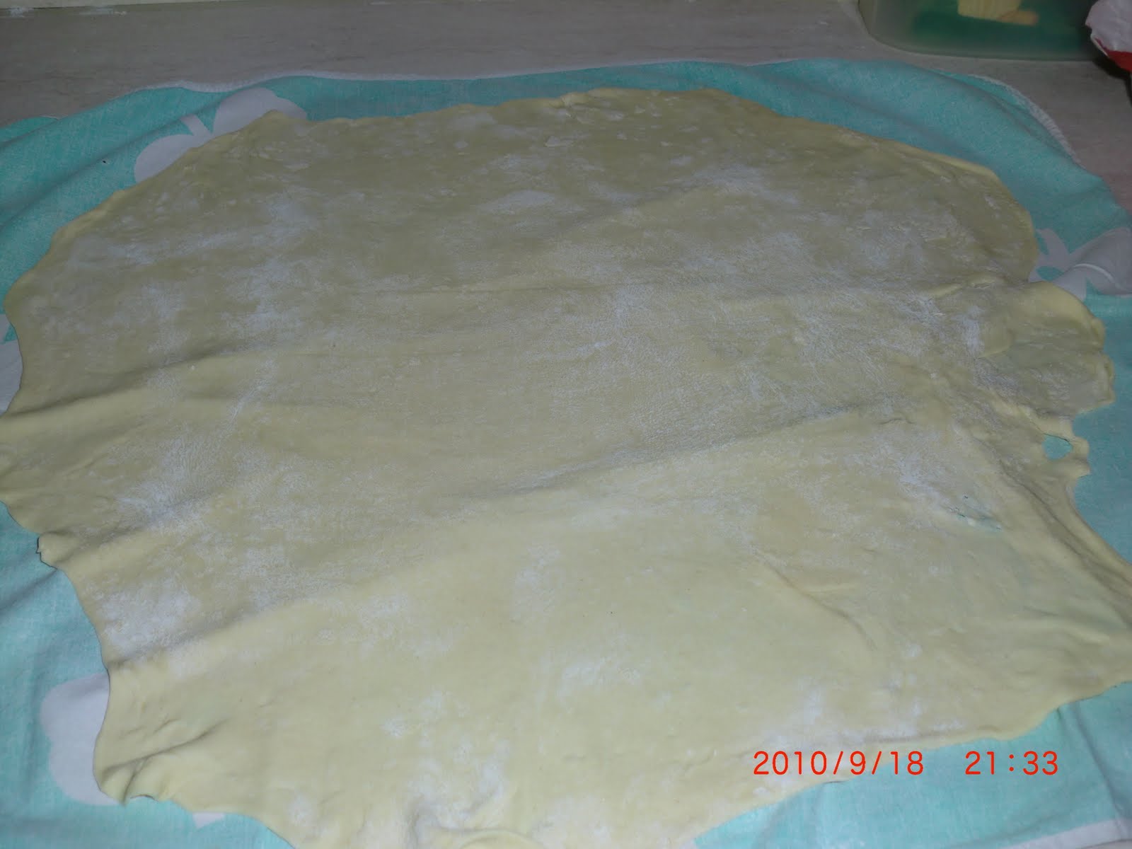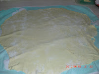 Stendere un canavaccio e infarinarlo, ponete la pasta al centro e stenderla con un matterello molto sottile.